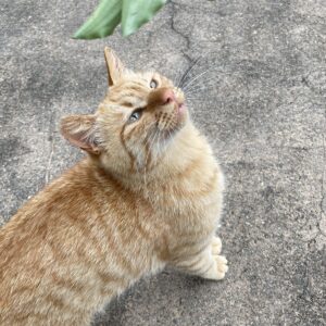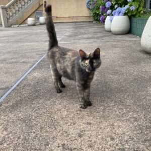 プープーと一緒に現れた子。足元でこてんと転がり甘えてきます。この子も抱っこもさせてくれますが、すぐ下りちゃいます。お兄ちゃんのプープーを見ているせいか年下の子猫ちゃんたちの面倒をみたりと優しい子です。好奇心もあってワンコのお散歩にも時々ついてきてお尻の方からこっそり近づいたりしています🌷