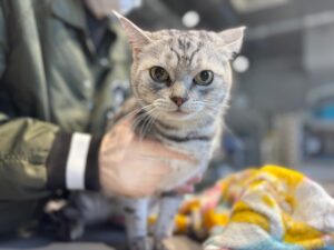 元々はとってもかわいがられていた猫さん。ある日突然飼い主さんが亡くなられ、警察などが家に入ったときに開いていた扉から外に出てしまったそう。